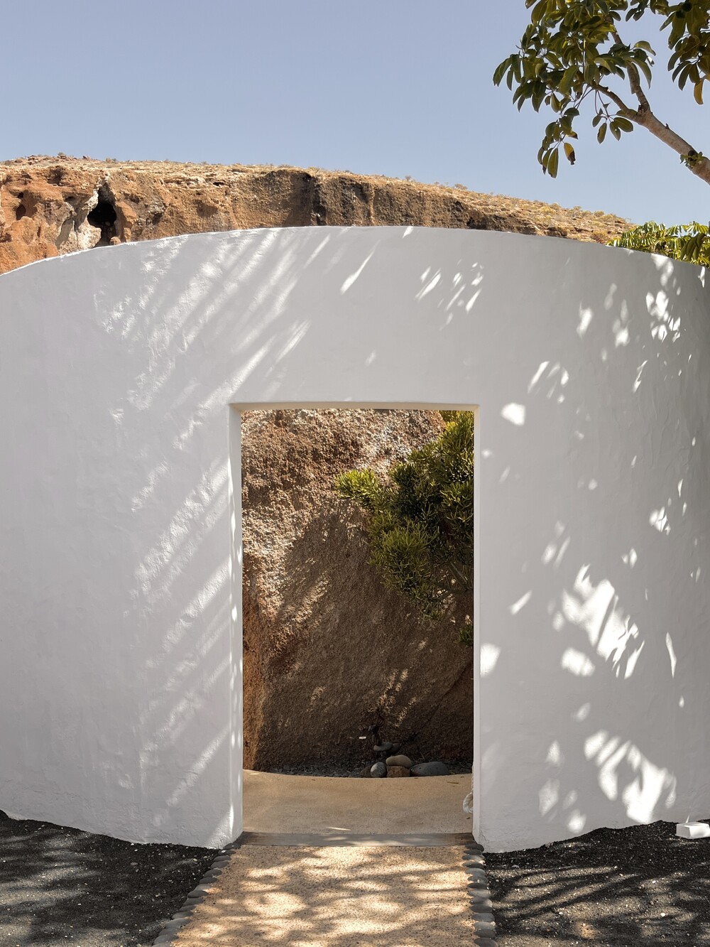 사진 속 장소는 스페인 란사로테 섬에 위치한 Museo Lagomar 미술관입니다. 화산암 지형 위에 지어진 공간으로, 건축가 세자르 만리케의 영향을 받은 자연과 공간이 유기적으로 흐르는 곳이었습니다. 동굴형 구조와 부드러운 곡선, 빛의 유입, 흰 벽과 대비되는 암석의 질감 등 그 자체로 하나의 조형을 이루며 아름답게 느껴졌던 길을 담았습니다.