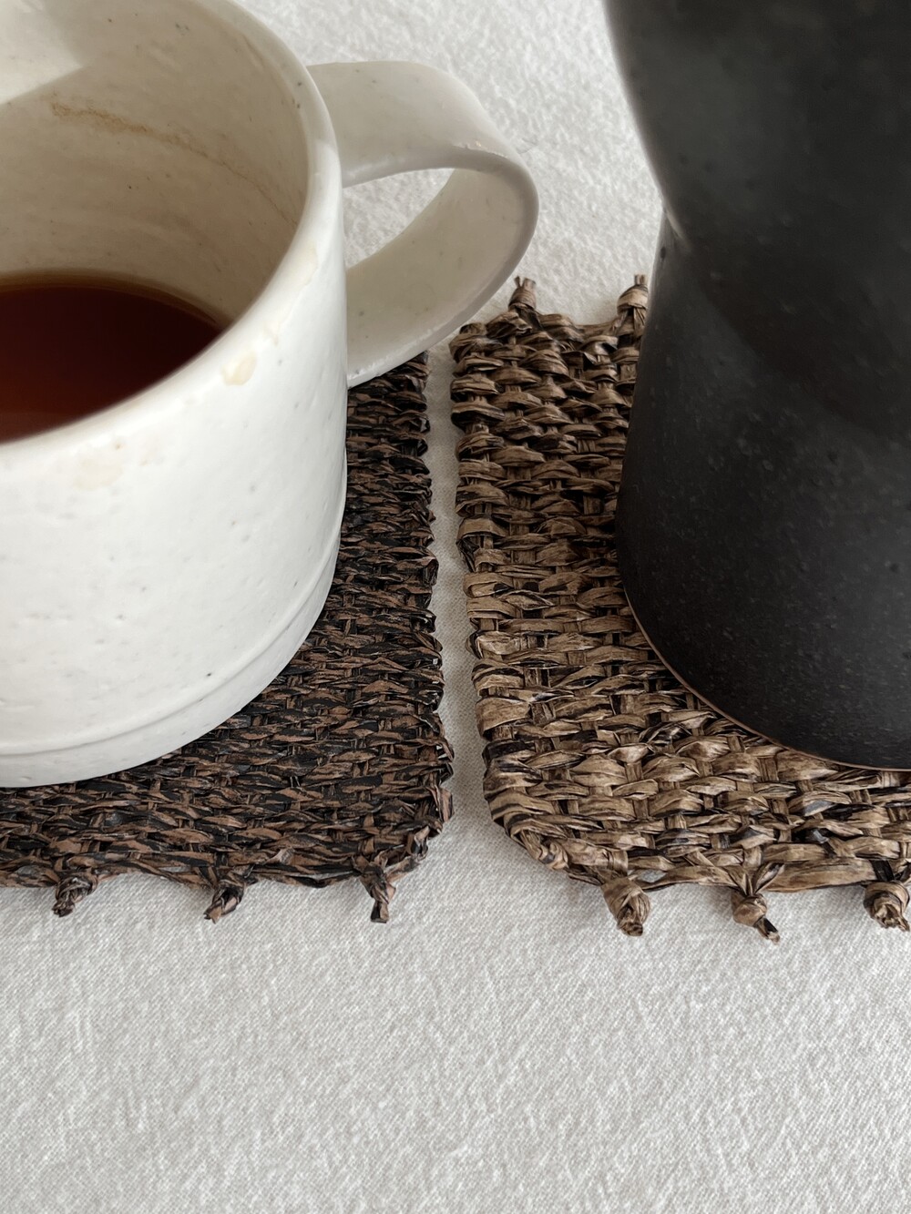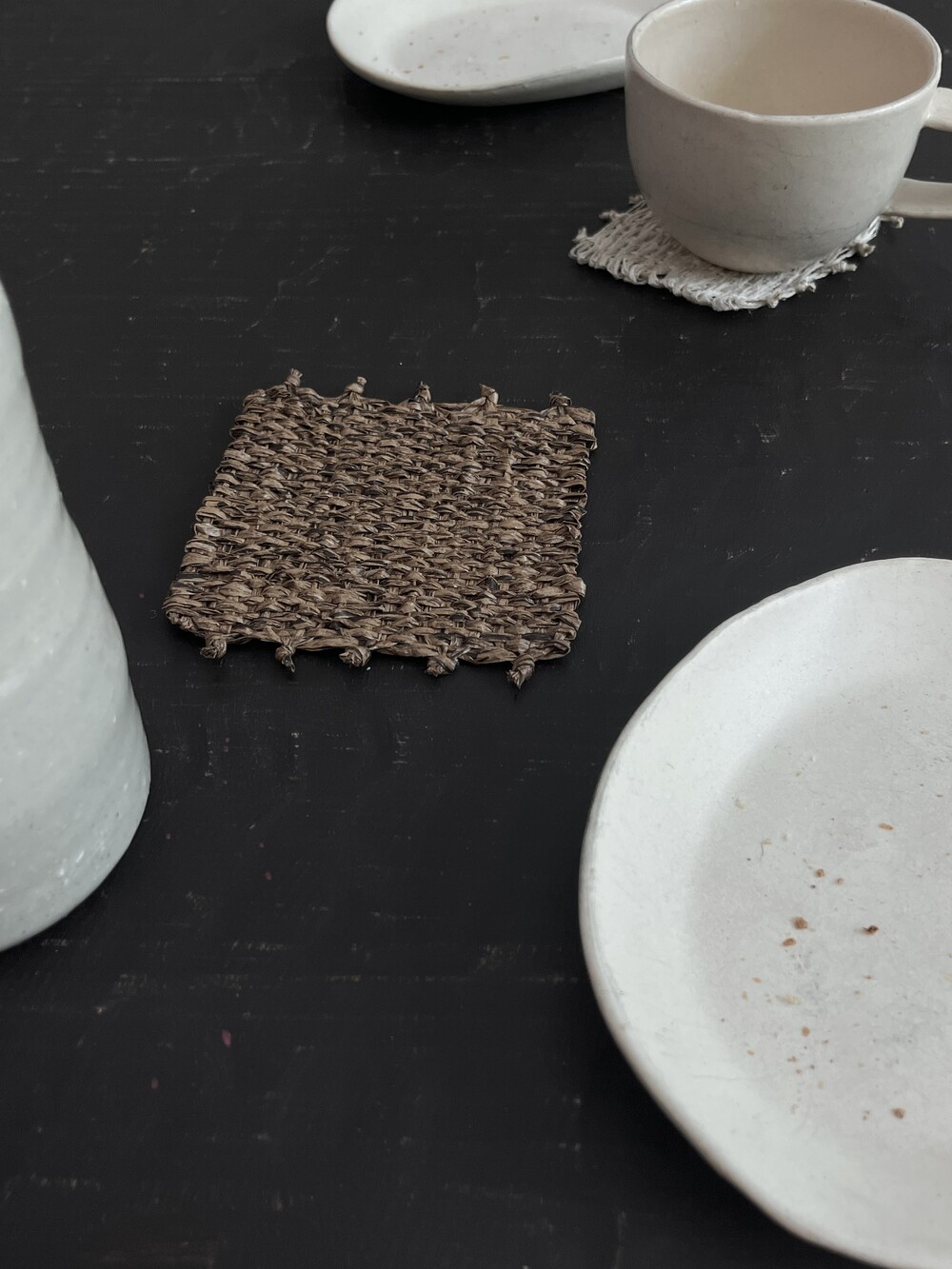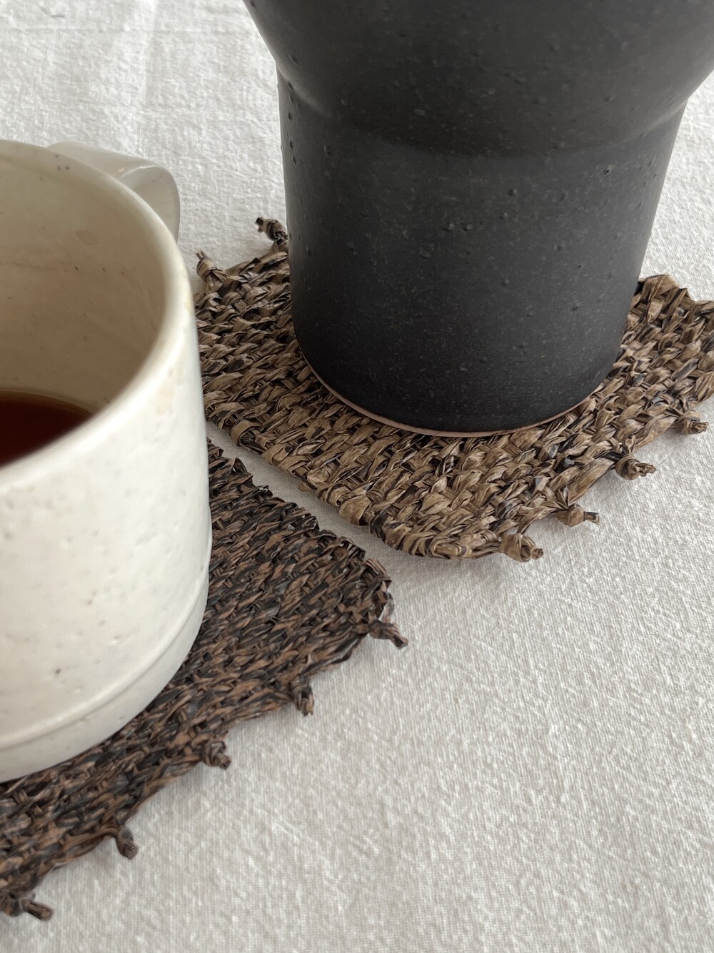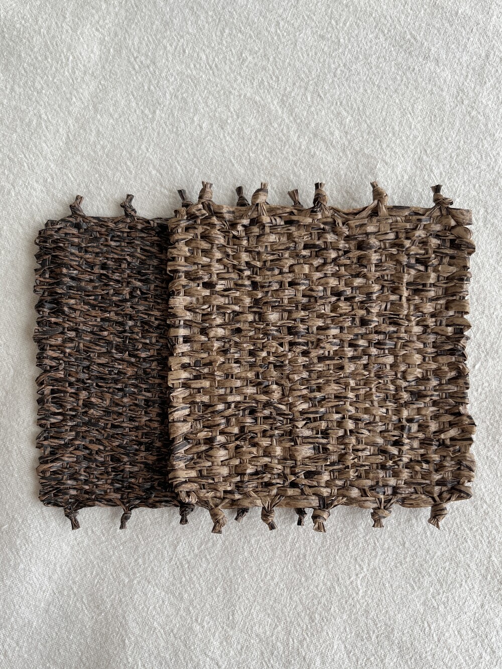 커피물이 들더라도 오염이 쉽게 눈에 띄지 않도록, 짙은 우드 톤으로 제작한 코스터입니다. 태피스트리 제작 방식을 통해 직접 손으로 짠 수작업 코스터입니다.