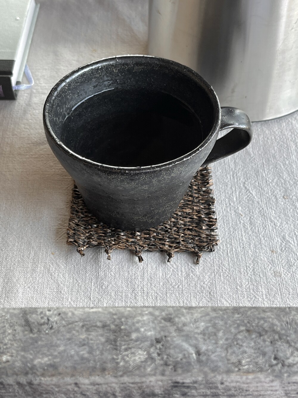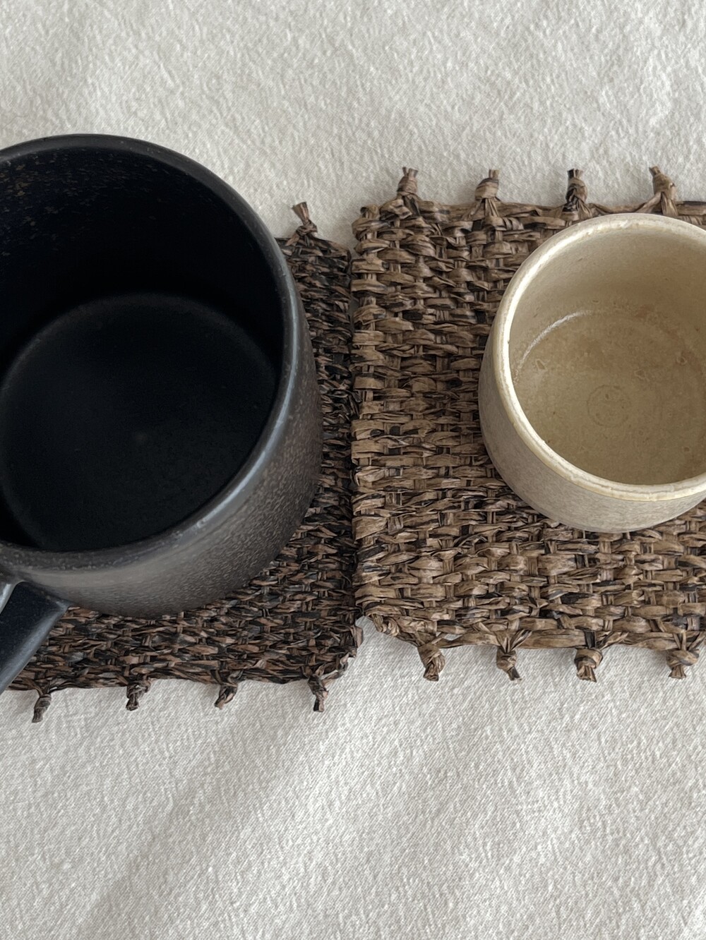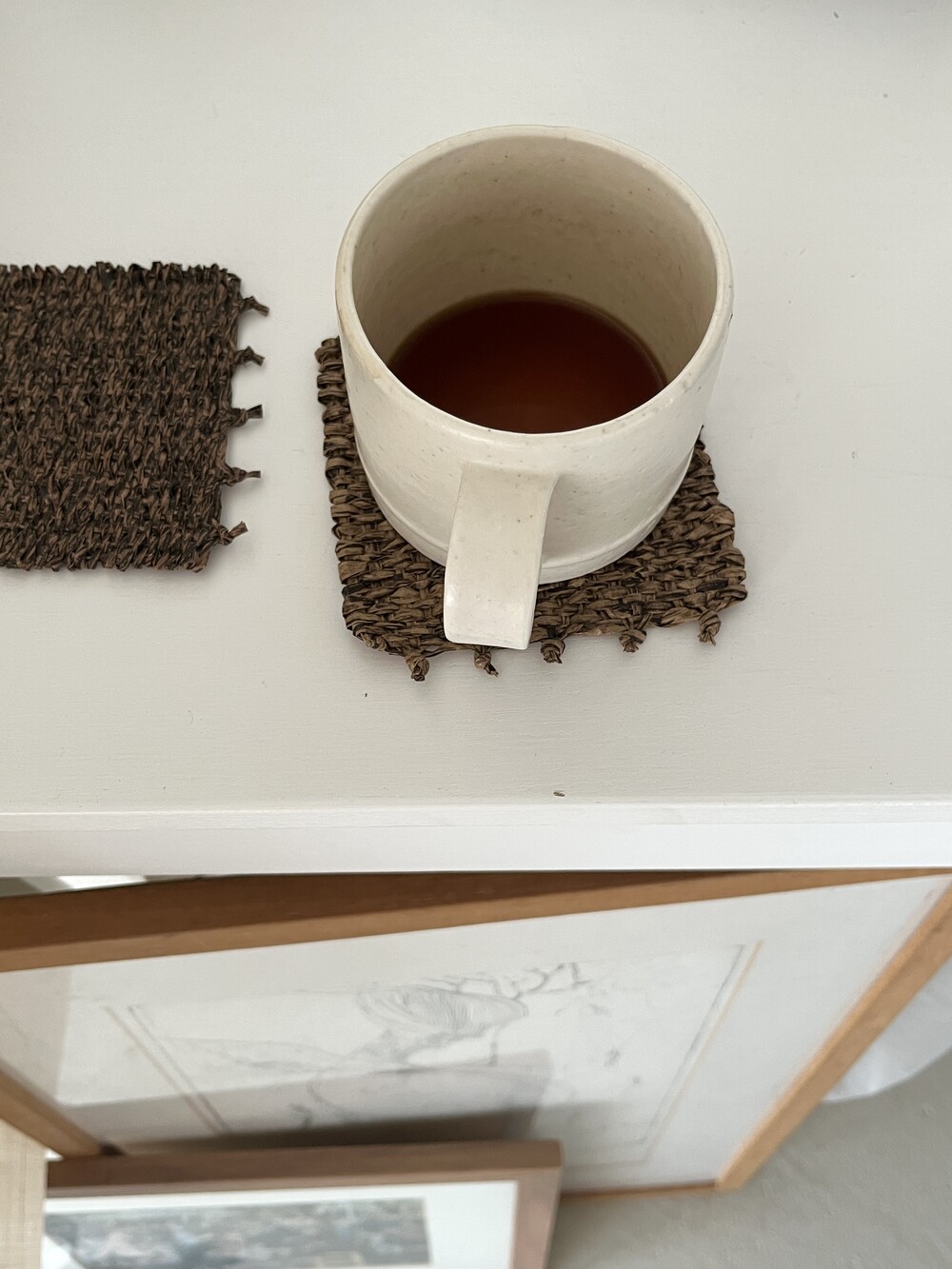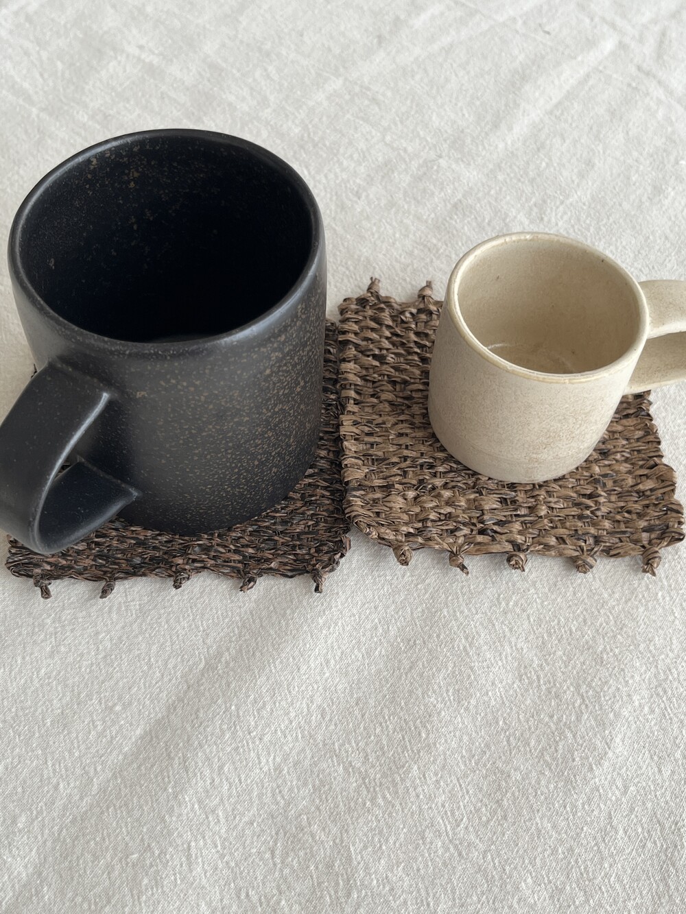 커피물이 들더라도 오염이 쉽게 눈에 띄지 않도록, 짙은 우드 톤으로 제작한 코스터입니다. 태피스트리 제작 방식을 통해 직접 손으로 짠 수작업 코스터입니다.