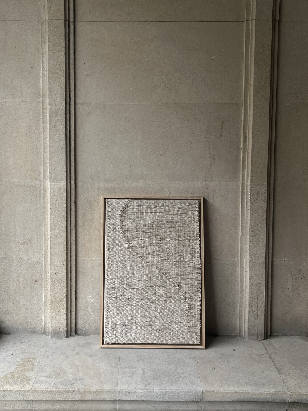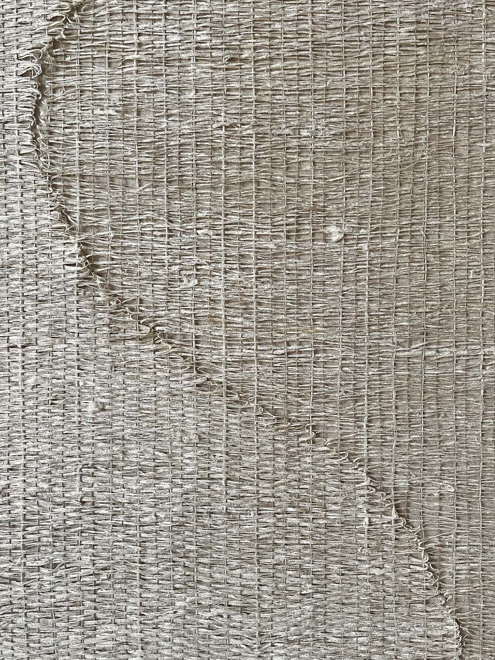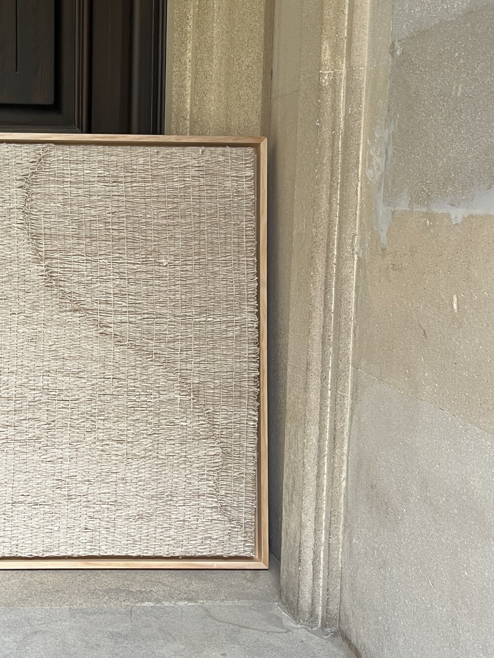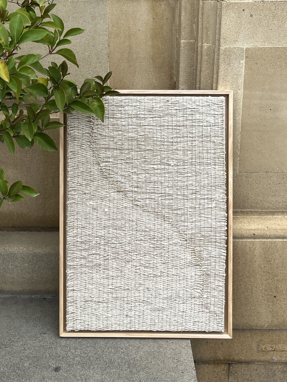 작업 과정 중, 선을 어떻게 표현할지에 대해 고민이 많았습니다. 여러 표현 방식을 시도했지만, 불필요한 요소들을 잘 덜어내어 간결하게 표현하는 것에 집중하였습니다. 작품을 볼 때 시선에 걸리는 부분이 없었으면 하여, 짜임의 밀도 차이로 자연스럽게 나뉘는 경계를 선으로 표현하였습니다. 빛과 각도에 따라 달라지는 선의 선명함과 텍스처의 깊이 또한 이 작업을 바라보는 또 하나의 요소가 되길 바랍니다.