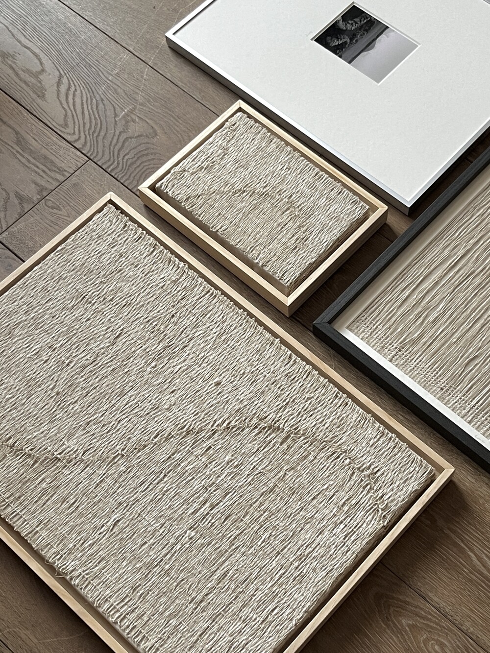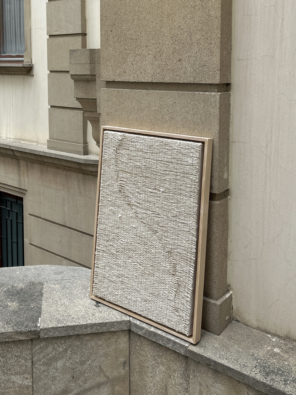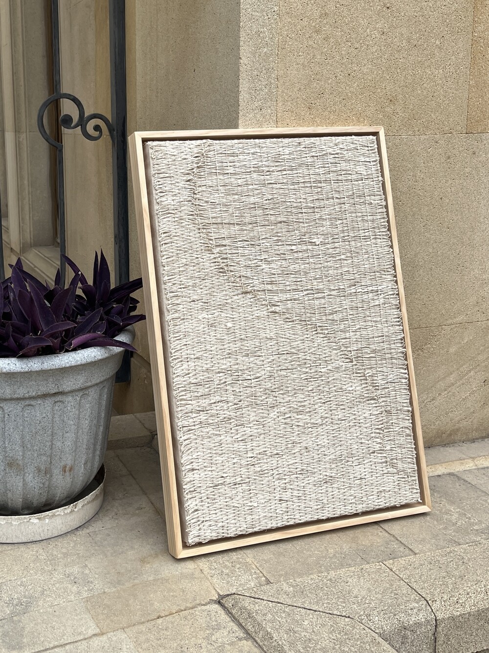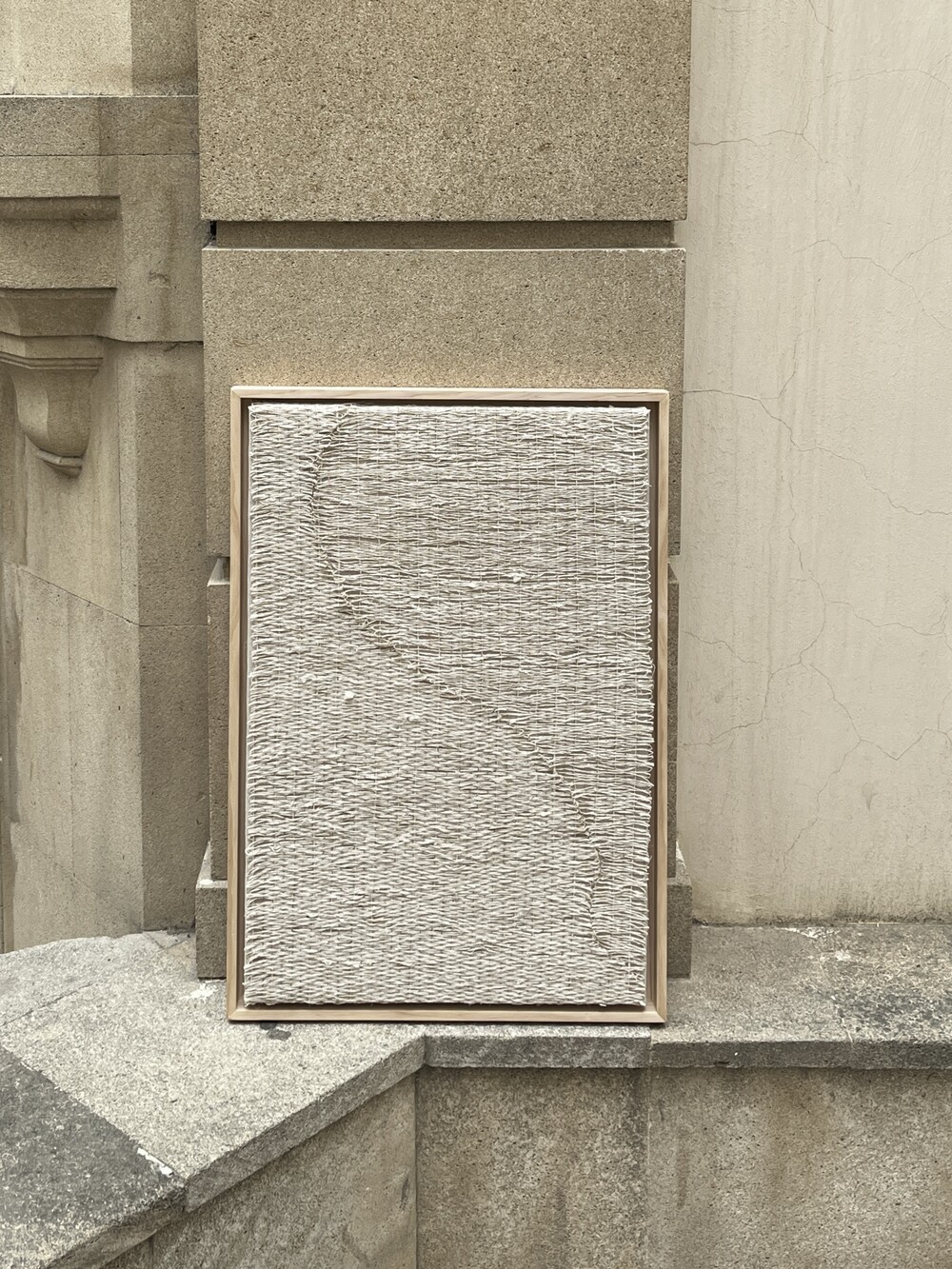 작업 과정 중, 선을 어떻게 표현할지에 대해 고민이 많았습니다. 여러 표현 방식을 시도했지만, 불필요한 요소들을 잘 덜어내어 간결하게 표현하는 것에 집중하였습니다. 작품을 볼 때 시선에 걸리는 부분이 없었으면 하여, 짜임의 밀도 차이로 자연스럽게 나뉘는 경계를 선으로 표현하였습니다. 빛과 각도에 따라 달라지는 선의 선명함과 텍스처의 깊이 또한 이 작업을 바라보는 또 하나의 요소가 되길 바랍니다.