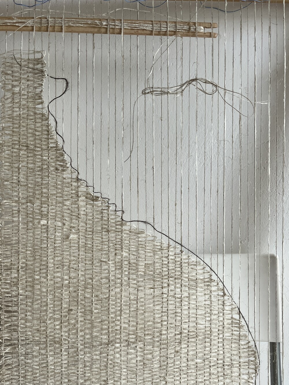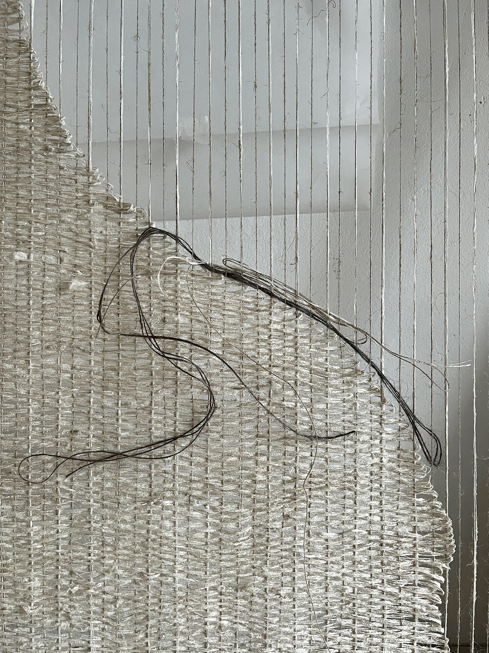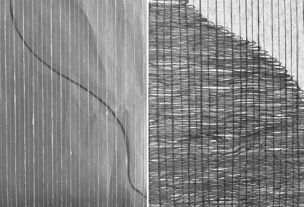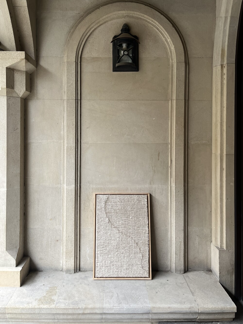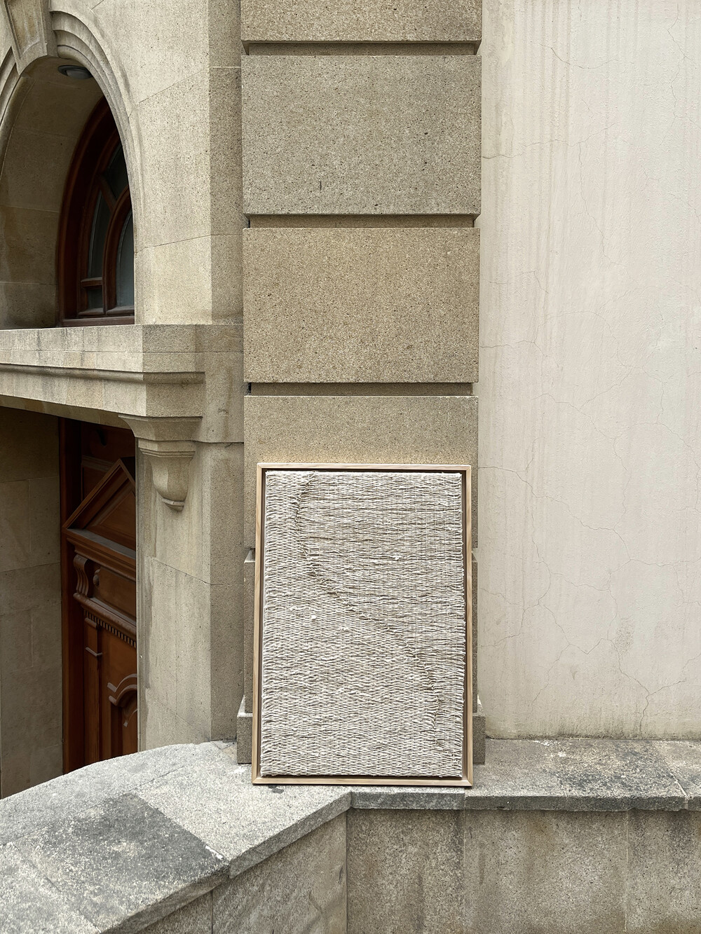 작업 과정 중, 선을 어떻게 표현할지에 대해 고민이 많았습니다. 여러 표현 방식을 시도했지만, 불필요한 요소들을 잘 덜어내어 간결하게 표현하는 것에 집중하였습니다. 작품을 볼 때 시선에 걸리는 부분이 없었으면 하여, 짜임의 밀도 차이로 자연스럽게 나뉘는 경계를 선으로 표현하였습니다. 빛과 각도에 따라 달라지는 선의 선명함과 텍스처의 깊이 또한 이 작업을 바라보는 또 하나의 요소가 되길 바랍니다.